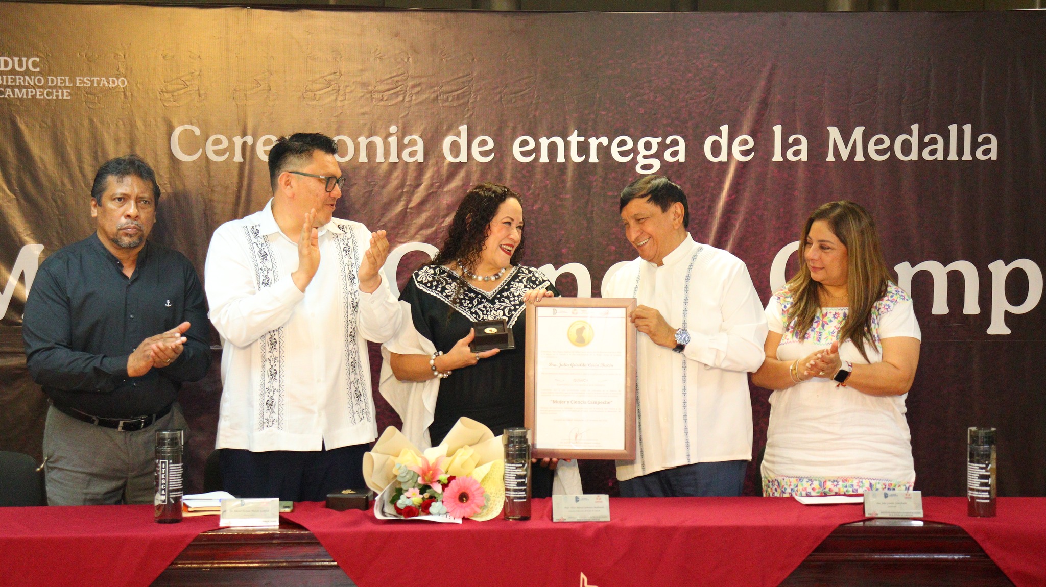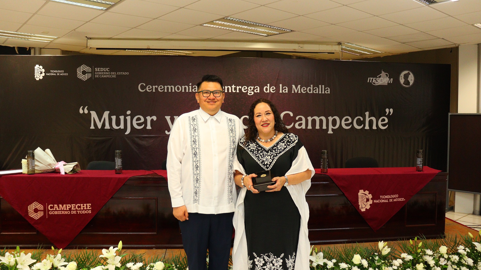 Ante la comunidad del Tecnológico de Calkiní, la Dra. Cerón Bretón recibió la medalla como símbolo del compromiso estatal con el talento femenino y la generación de conocimiento que contribuye al desarrollo sostenible de la isla del Carmen, el estado de Campeche y el país.