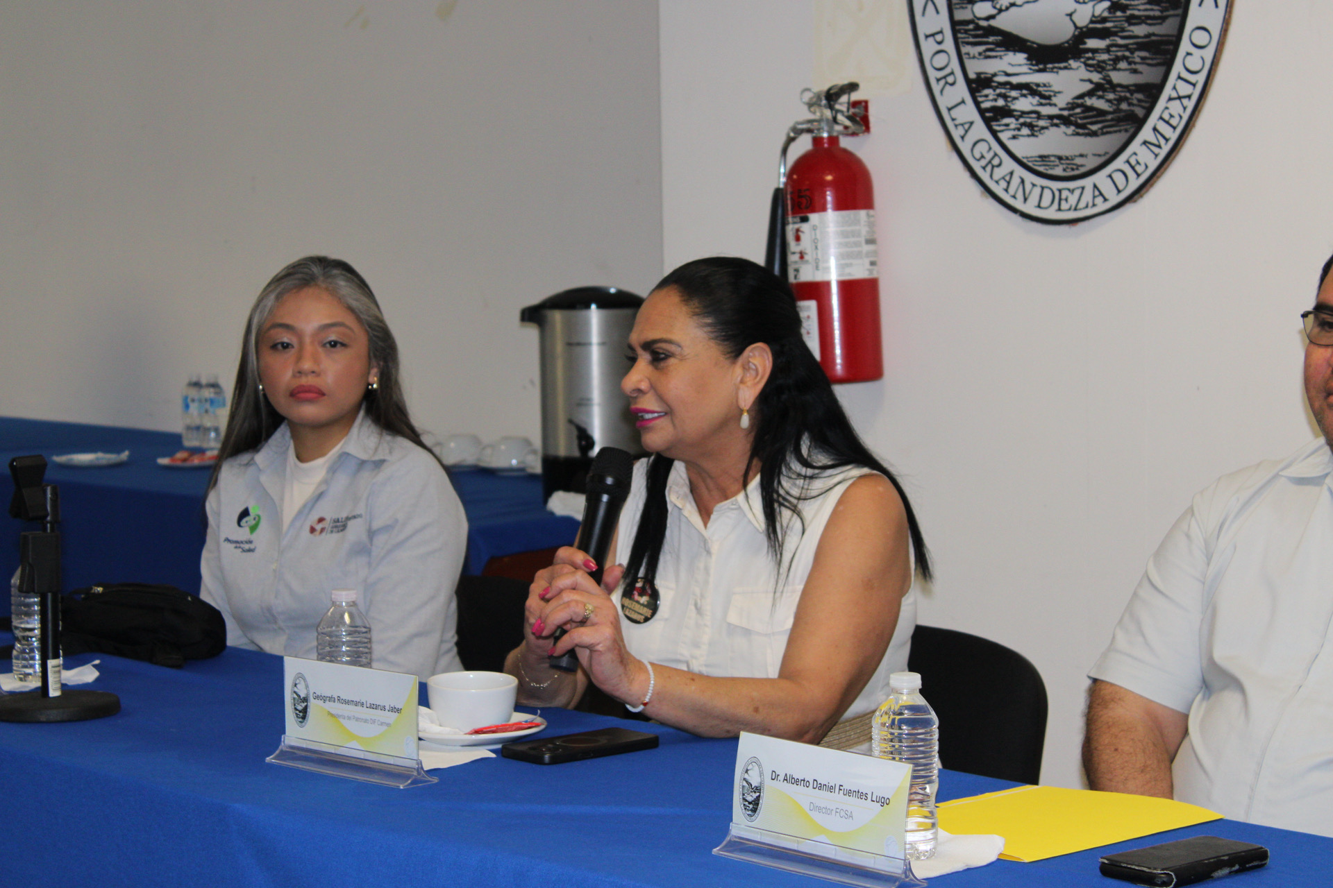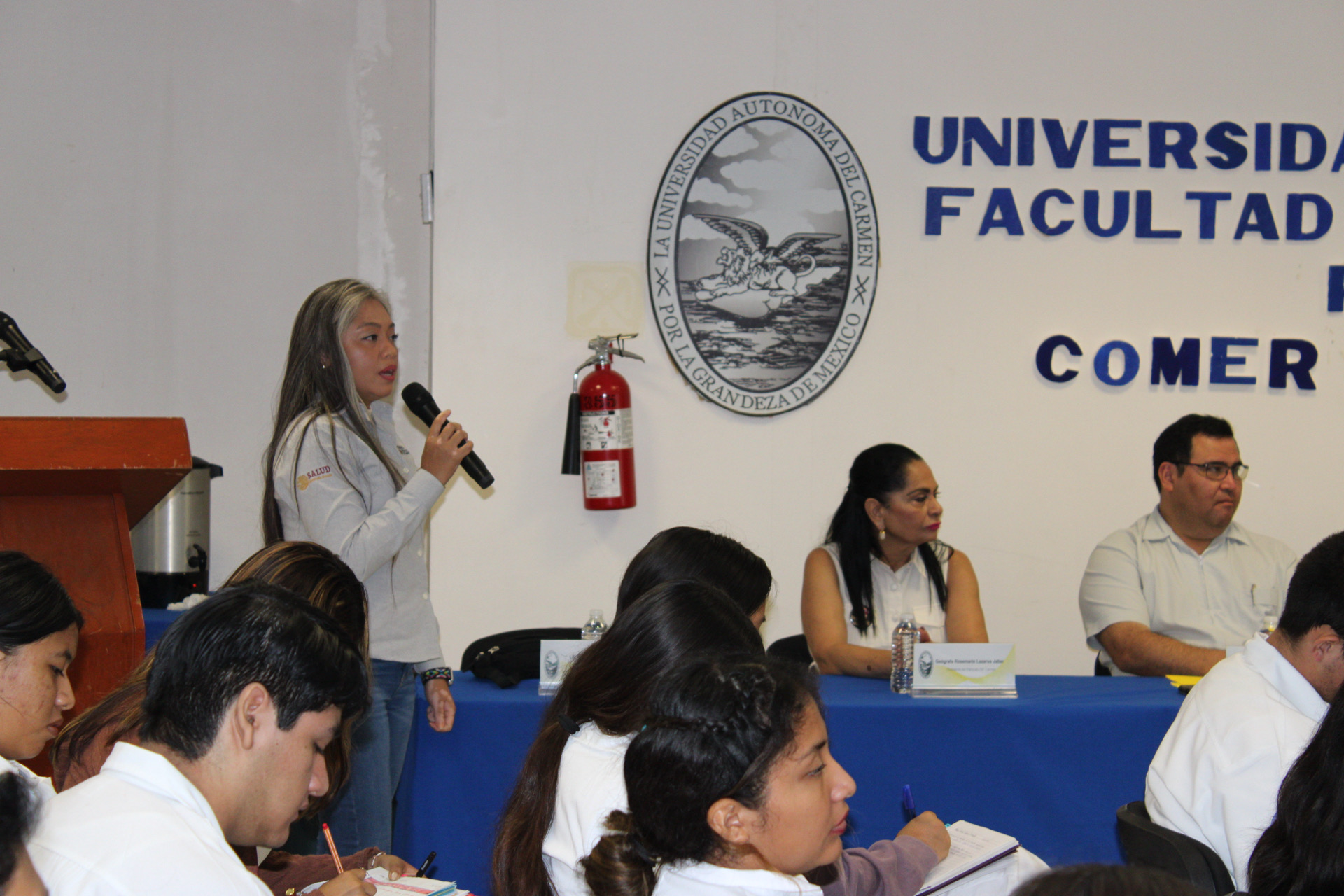 Estuvieron presente en el evento la Geóg. Rosemarie Lazarus Jaber, presidenta del Patronato DIF Carmen; Lic. Diana Margarita Villanueva Badillo, directora del DIF Carmen; Mtra. Yasmín Escalante García, secretaria administrativa de la Facultad; docentes y estudiantes.