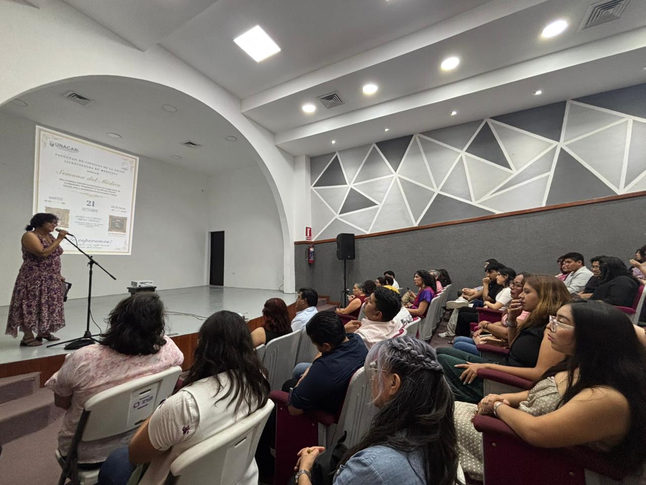 Durante la inauguración, el Dr. Sergio Evanny Castellanos Zárate, docente del Programa Educativo de Medicina, compartió una lectura reflexiva titulada “La ciencia que escucha, las manos que curan, el cuidado que acompaña”, donde destacó que la medicina es, ante todo, un acto de humanidad:
