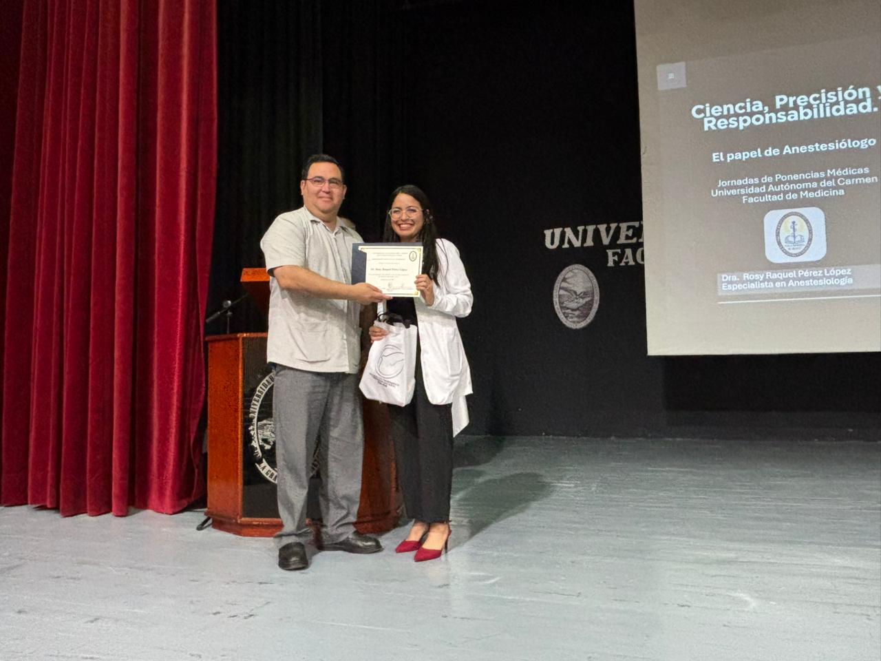 Posteriormente, la Dra. Rosy Raquel Pérez López, anestesióloga, compartió la ponencia “Ciencia, precisión y responsabilidad”, destacando la importancia del rigor ético y técnico en la práctica médica.