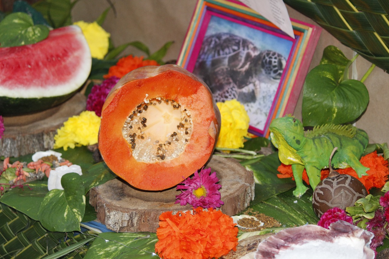 El altar rindió homenaje a las especies que habitan y protegen los ecosistemas costeros de la isla del Carmen, muchas de ellas hoy en peligro de extinción como el manatí, ocelote, cocodrilo de pantano, la iguana verde, el perrito de agua, el mapache de isla, las tortugas y las aves migratorias que cada año encuentran refugio en nuestros humedales.