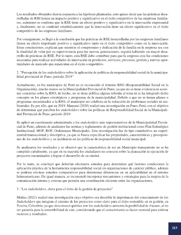 2. “Percepción de los stakeholders sobre la aplicación de políticas de responsabilidad social de la municipa-