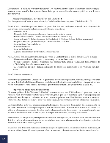 Las ciudades + B están en constante crecimiento. No existe un modelo único, al contrario, cada uno imple-