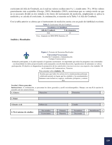 coeficiente del Alfa de Cronbach, en el cual sus valores oscilan entre 0 y 1, siendo entre .70 y .90 los valores