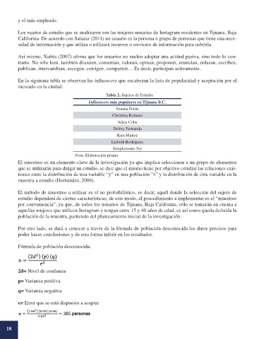 Los sujetos de estudio que se analizaron son las mujeres usuarias de Instagram residentes en Tijuana, Baja