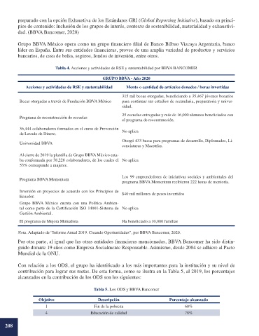 Tabla 4. Acciones y actividades de RSE y sustentabilidad por BBVA BANCOMER