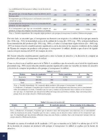 Nota. a. Predictore: (Constante). Considero que el atractivo fisico del instagramer esta relaciona con su conocimiento