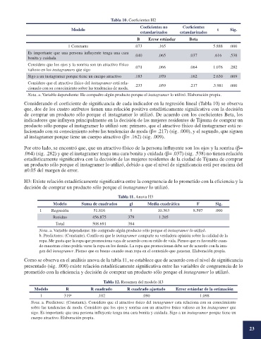 de comprar un producto sólo porque el instagramer lo utilizó. De acuerdo con los coeficientes Beta, los