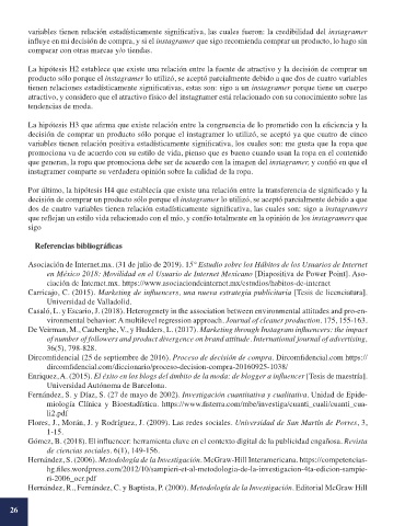 producto sólo porque el instagramer lo utilizó, se aceptó parcialmente debido a que dos de cuatro variables