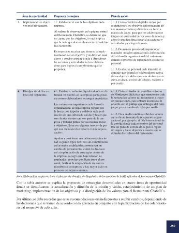 marketing, implementación de los objetivos y la divulgación de los valores para el Restaurante Chabelli’s.