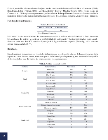 los resultados del análisis y confirma la confiabilidad del instrumento y los ítems utilizados, con un coefi-