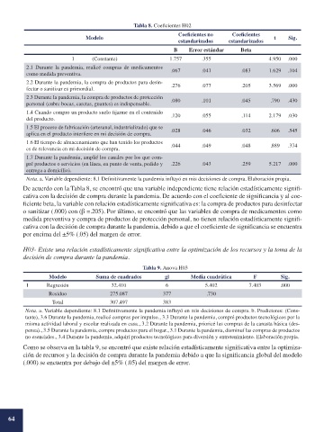 cativa con la decisión de compra durante la pandemia. De acuerdo con el coeficiente de significancia y al coe-
