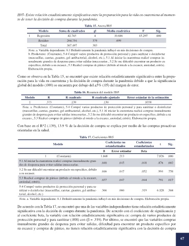 protección personal y para sanitizar (.000) con (β = .319). Por último, se encontró que las variables compras