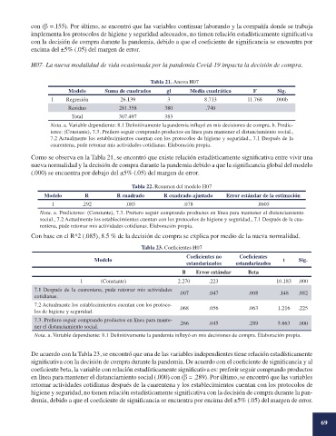 Nota. a. Predictores: (Constante), 7.3. Prefiero seguir comprando productos en línea para mantener el distanciamiento